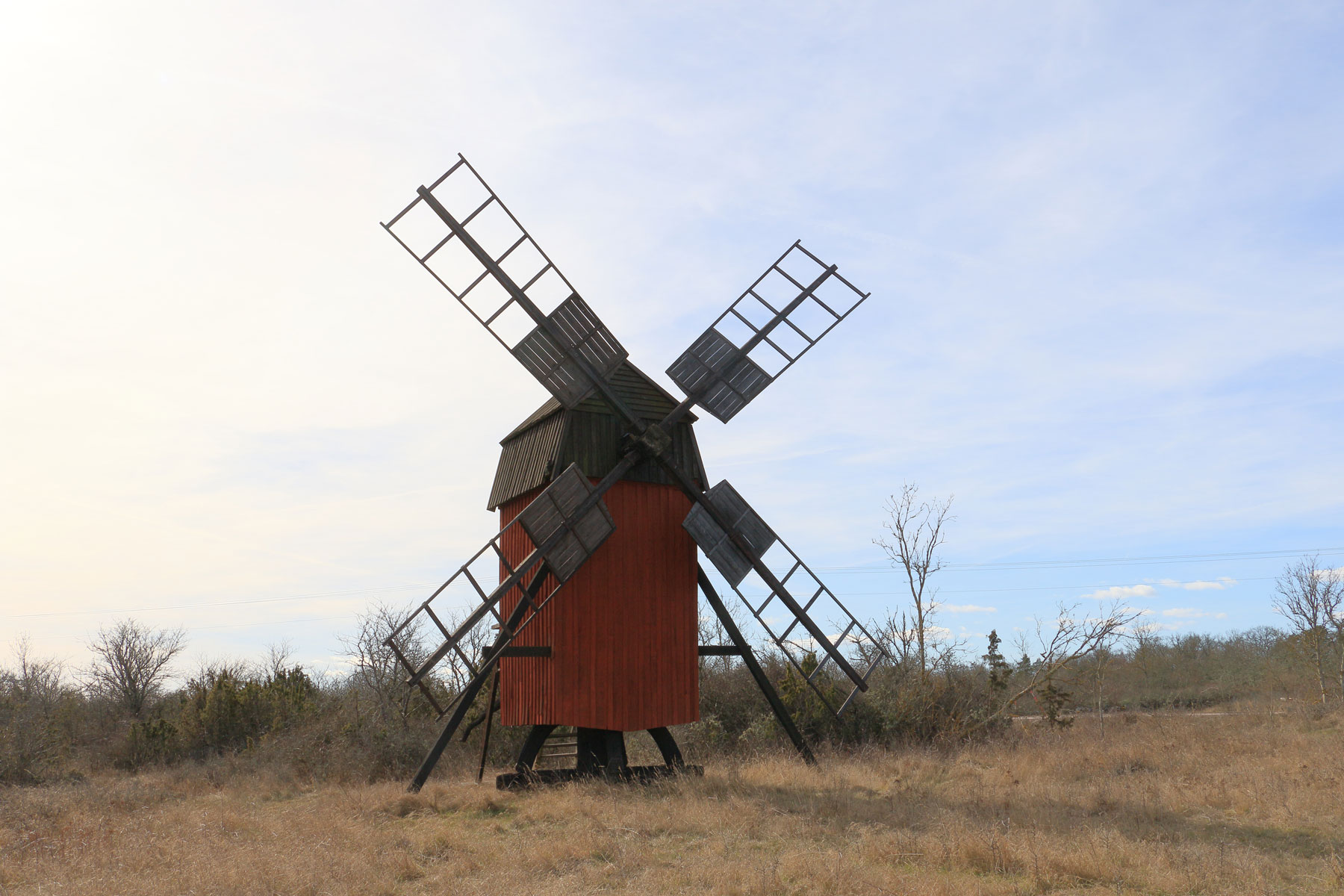 Väderkvarnen står öster om landsvägen.