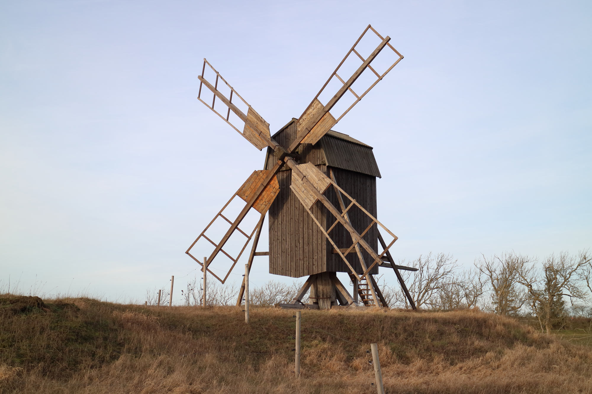 Denna väderkvarn står i Hulterstad strax söder om landsvägsbron över Penåsabäcken, nära den gamla bysmedjan.