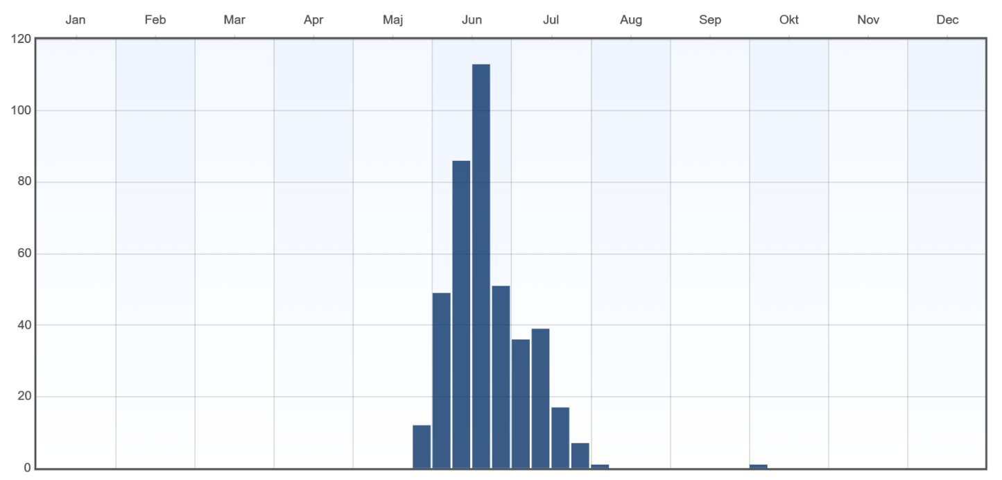 Blomningstid hos juni-formen på Öland enligt Artportalen