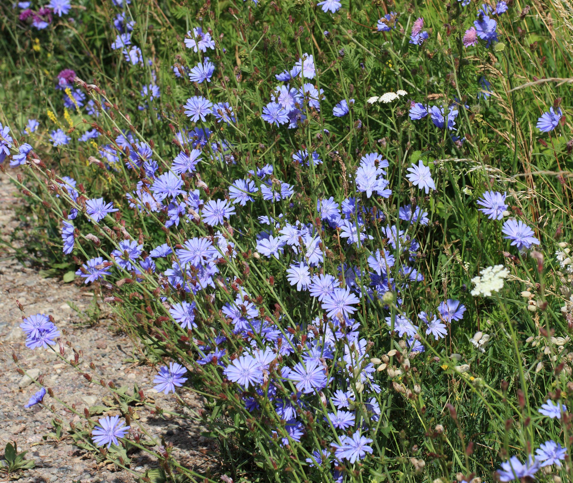 En vanlig växt utmed vägkanterna på Öland. Har ökat mycket. Växer även på schaktmassor, trädesåkrar o dyl där jorden är lucker, torr och näringsrik i soliga lägen. Gillar inte bete. Ett annat namn på cikorian är vägvårda.